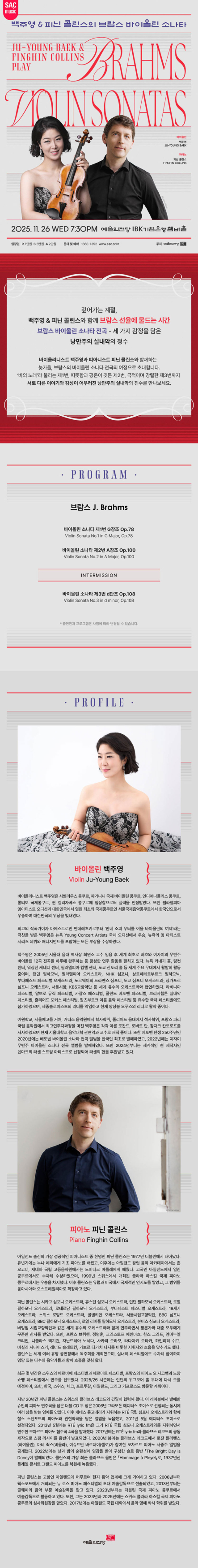 [11/26(수)] 백주영 & 피닌 콜린스의 브람스 바이올린 소나타