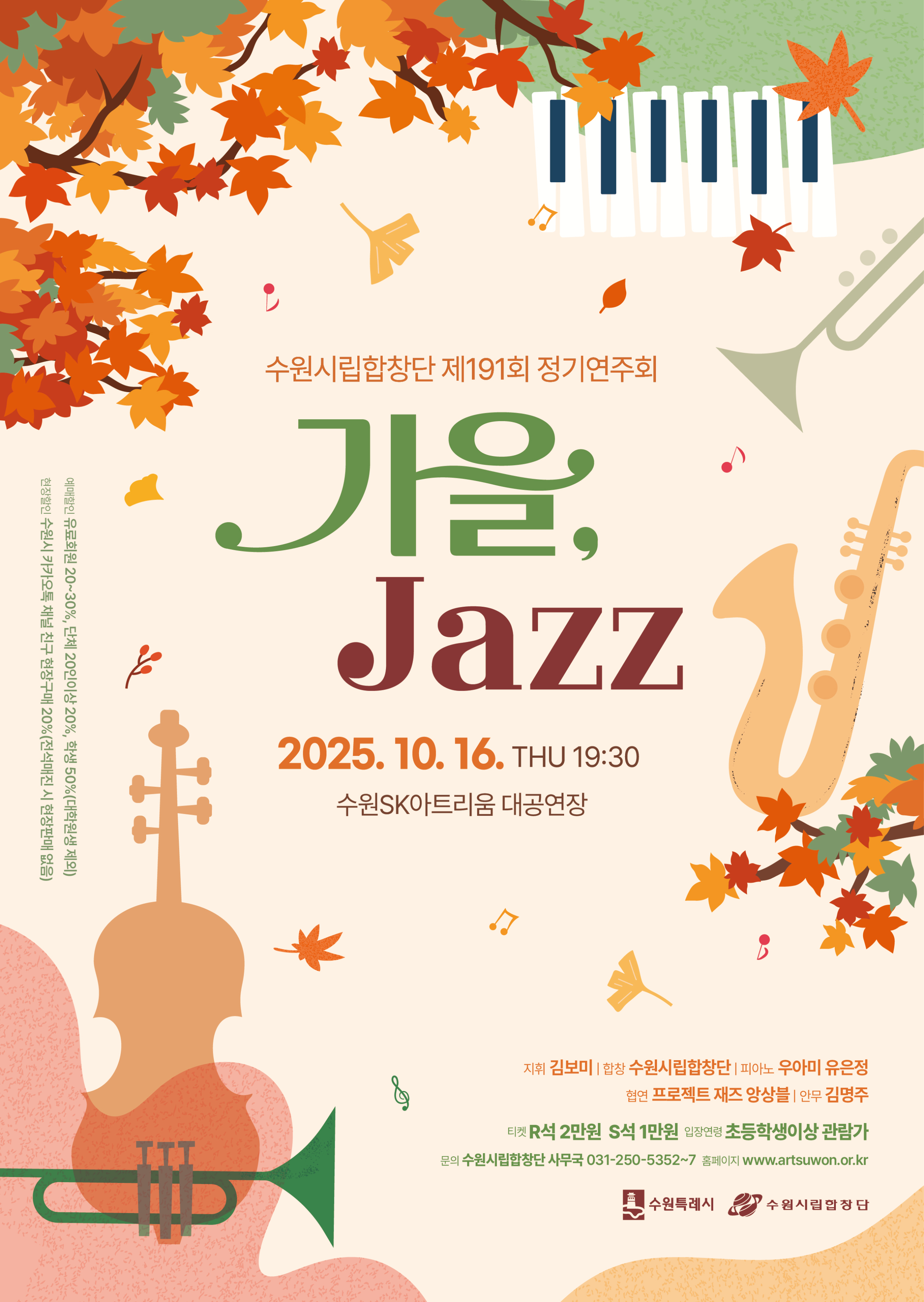 [마감] 10/16(목] 수원시립합창단 제191회 정기연주회 <가을, JAZZ>